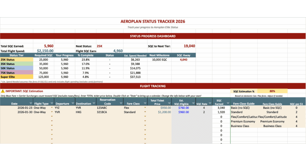 This tool takes the guesswork out of earning Aeroplan status and makes it easy to see where you stand and plan your travel spending strategically.