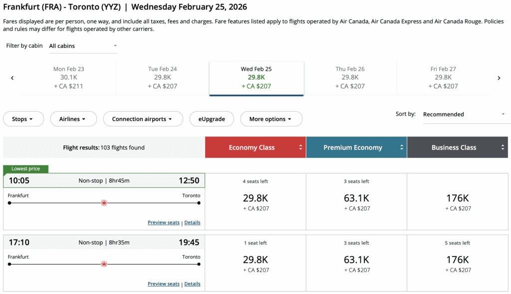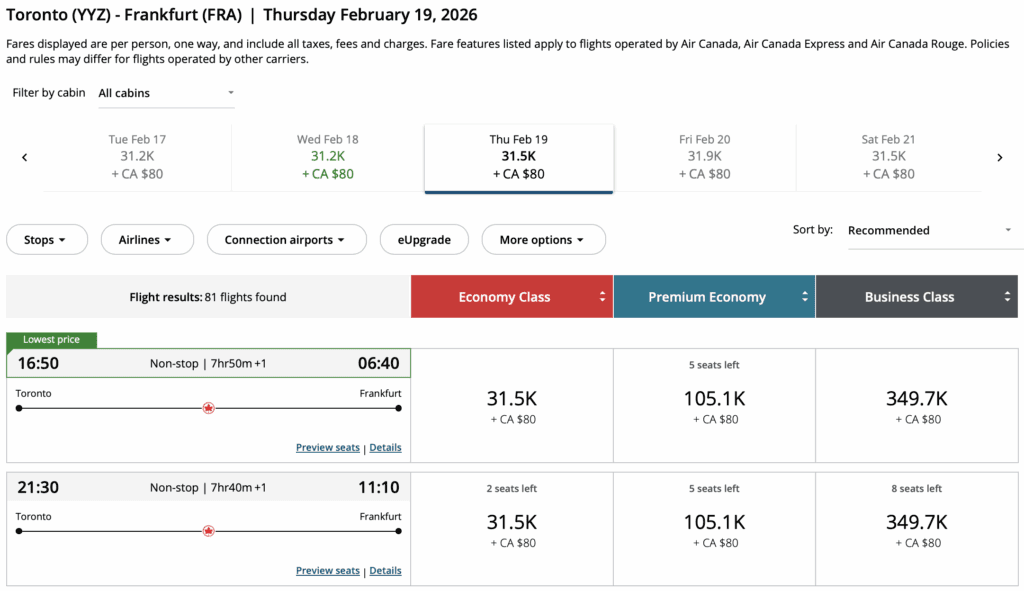 Think Canada from $114,sun routes from $290, Europe from $598, and Asia from $618, with a great mix of nonstop flights, seasonal value, and a few standout points redemptions starting at just 15,000 points one way.