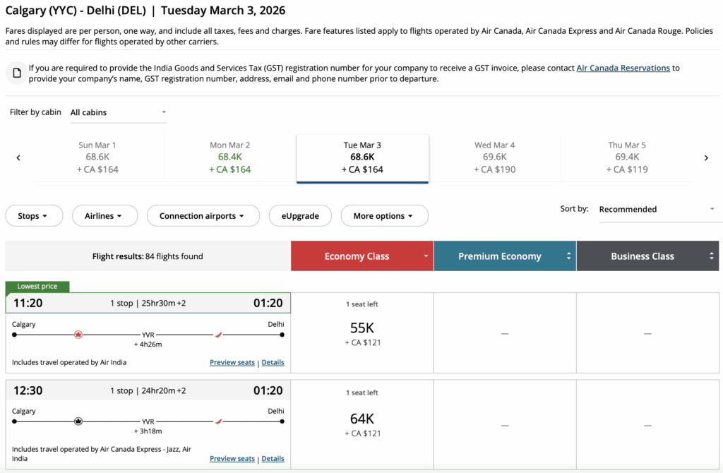 Think Canada fromย $95 , Caribbean & Central America fromย $268 , Mexico fromย $439 , Europe fromย $543,ย South America fromย $57 9, and Asia fromย $775 ย round trip, plus Aeroplan redemptions starting atย 33,900 points ย one-way.