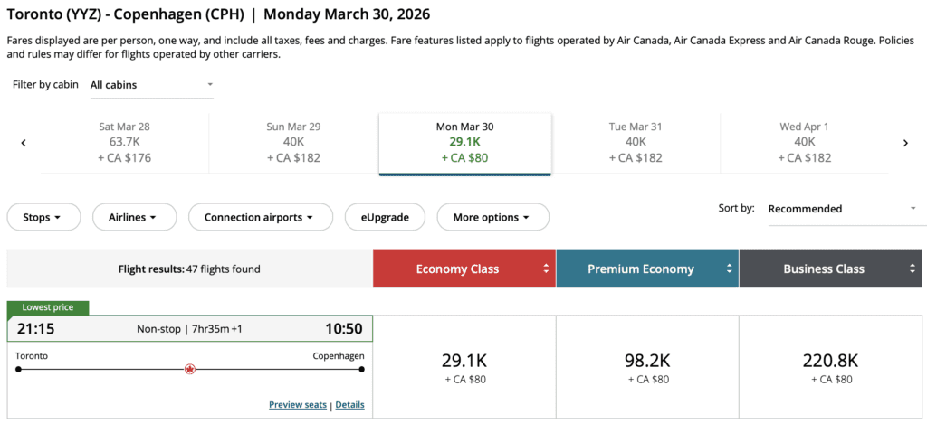 Think round trip fares from $89 within Canada, $367 to South America, $635 to Europe, $648 to Asia, and Aeroplan redemptions starting at 10,000 points + fees one way. ✈️