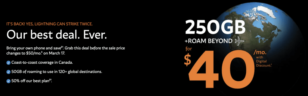 Freedom Mobile extended their standout $40/month 250GB + Roam Beyond plan, which includes data across Canada, the U.S., Mexico, and 120+ global destinations. For frequent travellers, this could mean skipping the hassle of buying eSIMs or local SIM cards abroad.