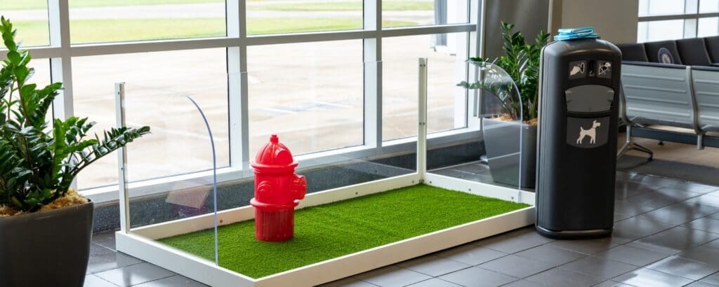 On our layover in Calgary, we actually left the secure part of the airport, brought him to an outdoor area, and then cleared security again. If you think your dog will need this, plan extra time. It is worth it.